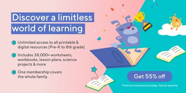 Don’t miss this deal! Use code EDCOM55 to save 55% on Premium Membership and unlock unlimited worksheets, lesson plans, and learning games today.